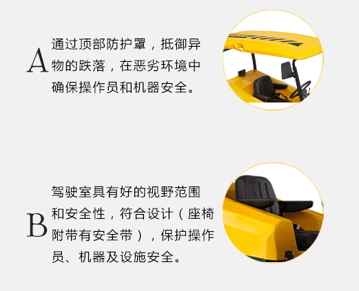 1.全封闭驾驶室,无惧寒冷雾霾,配备供暖系统,操作更舒适