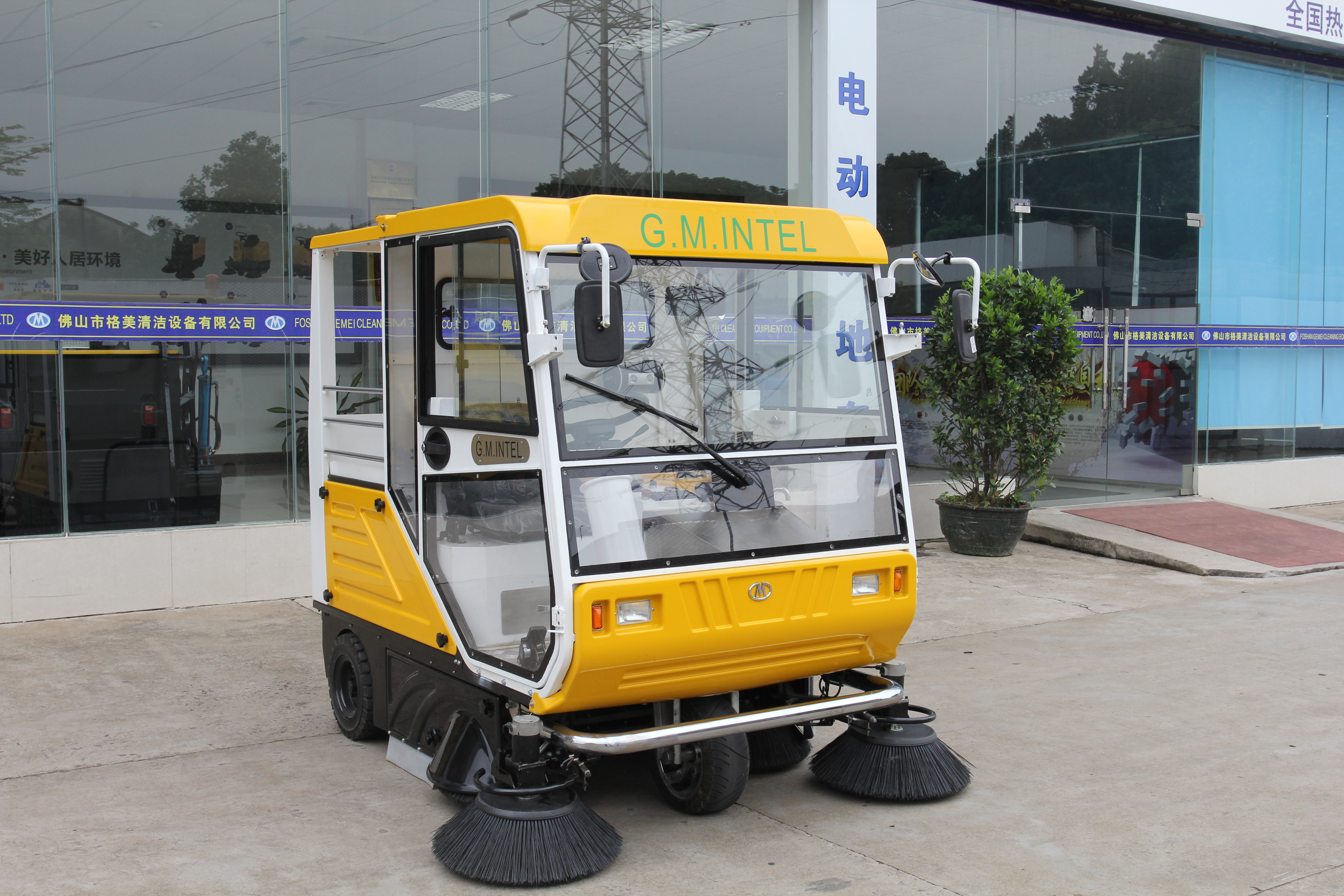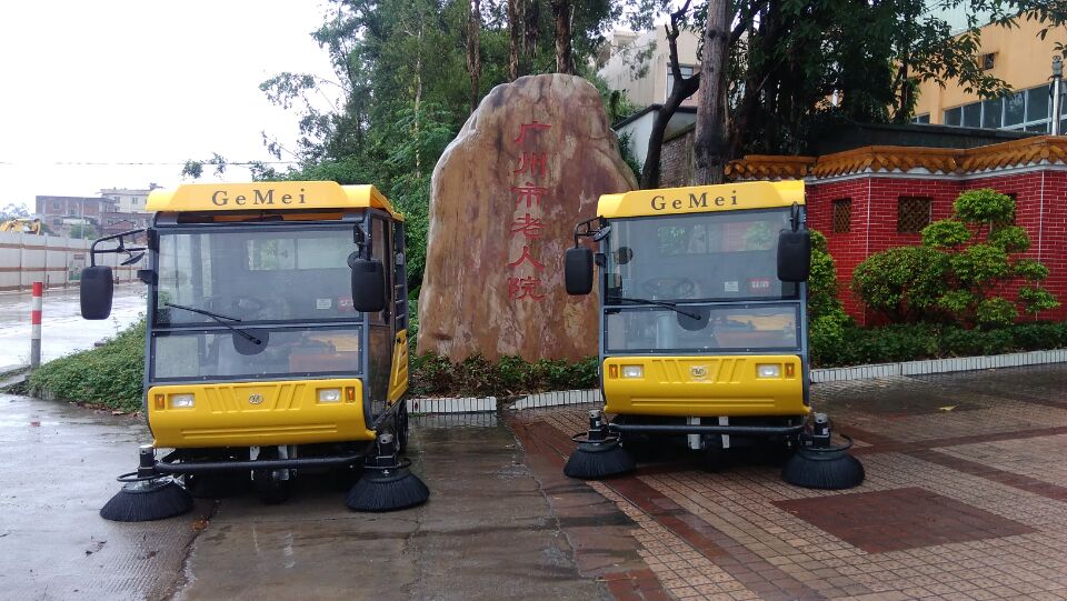 格美电动扫地车S10,清扫宽度1.9米,针对寒冷雾霾天气和风沙环境而设计,能清扫包括树叶、矿泉水瓶、易拉罐、 沙石等一系列垃圾,驾驶室配有风扇和推拉车顶,可让操作员在一年四季大多数气候条件下都能感到安全和舒适。